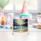 Este vaso de whisky de luna y de mar está decorado con la luna llena que se eleva sobre la orilla del mar. La imagen está en ambos lados y "Luna llena levantándose, los espíritus se alzan" y "Saludos al borde y el flujo de las mareas" está impresa en ambos lados. Esta imagen es impresionante y sorprendente.