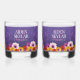 Haga de su día especial una celebración inolvidable con estos vasos de boda con tema floral sin tallo, que incluyen elegantes letras blancas con confeti de púrpura eslavo y coloridas daisies africanas sobre un fondo violeta morado a negro. Personalizar con los nombres de los recién casados, fecha de boda y/o mensaje de felicitación. El reverso muestra un diseño idéntico. Diseño © W.H. Sim. Ver más en zazzle.com/expressionsoccasions