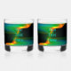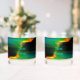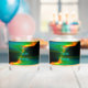 Una imagen fractal azul, verde y naranja con estrellas en el fondo, una representación del fenómeno físico llamado enredo cuántico. Personalizar agregando su propio texto.