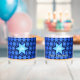 Una imagen fractal en 3D con un Magen David (Estrella de David) central y azul claro superpuso una matriz de Magens David un poco más oscuro. Personalizar añadiendo su propio texto en el reverso.