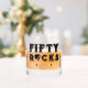 Roll into your fiftieth milestone with this cool Fifty Rocks guitar pick birthday party whiskey glass for 50 year old adults. Great for lifelong rockstars who love music. Personalize it with your event details for a rocking event that is unique to you.