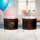 Un multicolor (rojo, amarillo y naranja), imagen fractal en espiral, parecido a un pájaro o un dragón pluvial, sobre un fondo oscuro. Personalizar añadiendo su propio texto en el reverso. Puede cambiar el color del texto y el tipo de letra.