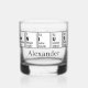 Fun whiskey glass for graduates featuring the word GENIUS created using the periodic table. Below the design is a space to add your name. This is a fabulous personalised graduation gift.