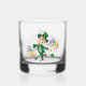 Un vaso de whisky con el Ilustracion de un lindo y feliz leprechaun sonriente y bailando, lleva puesto un traje verde y un sombrero de top y está rodeado de salpicaduras de color arcoiris Un diseño perfecto para celebrar el Día de San Patricio, dibujado por Radka2D