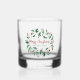 Hermosas hojas de color agua verde con bayas rojas y azulejos adornan estas lindas gafas de whisky navideño para tu fiesta navideño. Personaliza el guión de festividad roja con tu apellido en el centro de este magnífico patrón botánico.