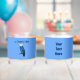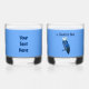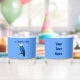 Una lechuza azul con el gorra del chef y un texto en francés que lee La Chouette Bleue (La Lechuza Azul); el logo de la panadería y la cafetería. Deliciosas delicias al horno y comida del Reino Unido, Europa y de todo el mundo. Parar y vernos. Personalizar añadiendo su propio texto en el reverso. Scones, flammekuchen, sopa de maní; sólo algo de lo que hacemos a diario para nuestros clientes.