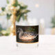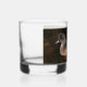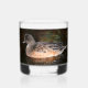 Vidrio de Whiskey que muestra la foto de una hembra de patos cirujanos norteamericanos flotando en la superficie de un estanque. También conocido como Baldpate. Imagen impresa en un lado del vidrio.
