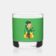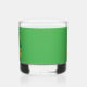Vidrio de Whiskey con un Ilustracion de un leprechaun sonriente alegremente bailando usando un traje verde, corbata de arco y un gorra de bolos; con notas negras y un arco iris amarillo y naranja con fondo verde. ¡Un diseño perfecto para celebrar el Día de San Patricio!