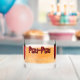 Una pimienta peri-peri roja, también conocida como piri-piri o pili-pili, está decorada con patrones inspirados en la tradicional sarong capulana de Mozambique y se sienta en un fondo amarillo con una versión más pequeña del mismo patrón y una etiqueta de escritura en la esquina. Este pimienta roja y picante se cultivó originalmente en Mozambique después de que los exploradores portugueses trajeran plantas de pimienta. Este cristalería también está disponible en latas de vidrio y estilos de vidrio sin tallo.