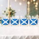 Coma, bebe y celebra a Robbie Burns the Inmortal Bard y al hijo favorito de Escocia con este atrevido y brillante vaso de vino sin tallo del 25 de enero, que incluye el Saltire (Cruz de San Andrés) y el diseño simple pero llamativo, azul y blanco de la bandera escocesa. El reverso muestra un diseño idéntico. Diseño © W.H. Sim. Ver más en zazzle.com/expressionsoccasions