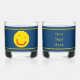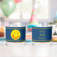 Un sol amarillo de ojos verdes sonriendo en un fondo azul. Personalizar añadiendo su propio texto en el reverso. Puede cambiar el color del texto y del fondo.