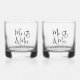 Este personalizado de vidrio de whisky para la novia y el novio incluye "Mr & Mrs." escrito en un gran y elegante guión y un ilustracion de dos anillos de bodas juntos. Agregue su nombre y fecha de boda.