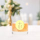 Las rocas o los cristales de whisky con tres cruces de color marrón rojizo, como las del Calvario, hacen una declaración sencilla. Se muestran en un círculo amarillo pálido, fractal. Gran regalo cristiano para el calentamiento de la casa. Una forma encantadora de compartir tu fe.