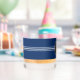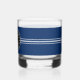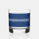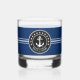 Un vaso de whisky con temática náutica personalizada con el nombre de tu barco, yate o apellido (u otro texto deseado). Este diseño cuenta con un ancla de barco creado por un personalizado con cuerdas de amarre y 13 estrellas en blanco y negro sobre azul marino clásico.