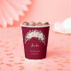 Agrega un toque de elegancia a tu estación de bebidas con estos hermosos vasos de papel desechables. El diseño presenta un delicado arco de acuarela de rosas rosadas y crema, acentuado por suaves hojas de eucalipto verdes. Personaliza la taza con el nombre y la fecha de la celebración de cumpleaños en una fuente de letra sofisticada. Estas tazas personalizables son perfectas para servir bebidas calientes o frías en un cumpleaños número 30, 40, 50 o cualquier cumpleaños importante, una despedida de soltera o un evento sofisticado, ofreciendo un detalle encantador y coherente para tu fiesta.