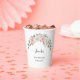 Agrega un toque de elegancia a tu estación de bebidas con estos hermosos vasos de papel desechables. El diseño presenta un delicado arco de acuarela de rosas rosadas y crema, acentuado por suaves hojas de eucalipto verdes. Personaliza la taza con el nombre y la fecha de la celebración de cumpleaños en una fuente de letra sofisticada. Estas tazas personalizables son perfectas para servir bebidas calientes o frías en un cumpleaños de 30, 40, 50 años o cualquier cumpleaños importante, una despedida de soltera o un evento sofisticado, ofreciendo un detalle encantador y coherente para tu fiesta.