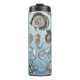 Gran vaso termal de mirada hecho en azul, con las ilustraciones del vintage de una variedad vida marina. Personalice el texto negro, en la parte inferior del vaso, para leer lo que usted quiere.