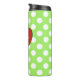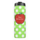 El vaso termal de encargo del profesor de escuela de la diversión hecho en un verde claro con los lunares blancos grandes. Los gráficos de una manzana roja del dibujo animado, tienen texto blanco de encargo listo para personalizar para su profesor preferido. ¡Gran idea para un regalo!