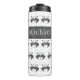 NewParkLane - vaso termal, con un modelo blanco y negro lindo del racoon en acuarela, contra un modelo de la diversión de polkadots grises claros. Con un marco gris oscuro para su nombre. Fácil modificar para requisitos particulares en Zazzle con su propio texto para un diseño personalizado. Todo el estilo del texto, colores, tamaños se puede modificar para caber sus necesidades.