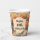 Celebra cualquier edad con una preciosa taza de papel de personalizable. Magníficos crisantemos rosas y naranjas con mariposas azules y suntuosas zonas verdes. Un diseño femenino elegante pero bonito.