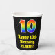 Este divertido y emocionante diseño de taza de papel con temática de cumpleaños presenta un gran número "10" con un patrón inspirado en el gradiente del espectro arcoiris. También incluye el mensaje "Feliz décimo cumpleaños", y un nombre personalizado. El fondo es negro de color. Vibrantes y coloridas tazas de papel como esta pueden ser divertidas de usar en una fiesta de cumpleaños/celebración que se lleva a cabo para celebrar el décimo cumpleaños de alguien. [~Z0000537]