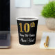 Este elegante, elegante y sofisticado diseño de tazas de papel con temática de cumpleaños presenta un gran número ordinal "10" con un aspecto de imitación/falso dorado, además del mensaje de bienvenida de cumpleaños "Feliz 10 cumpleaños", y un nombre personalizado con un tipo de letra estilo script. También tiene un fondo de color negro. Se pueden usar vasos de papel como este en un fiesta que se celebra el décimo cumpleaños de alguien. [~Z0000538]