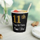 Este lujoso, elegante y sofisticado diseño de taza de papel de cumpleaños presenta un gran número ordinal "11th" con una apariencia similar a la de oro imitación/faux, junto con el mensaje de bienvenida de cumpleaños "Feliz cumpleaños número 11", y un nombre personalizado con un tipo de letra estilo script. También tiene un fondo de color negro. Se pueden usar lujosos vasos de papel como este cuando se aloja un fiesta para alguien en celebración de su 11 cumpleaños. [~Z0000538]