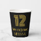 Este estilo vintage y el inspirado diseño de la copa de papel con temática de cumpleaños Roaring Twenties presenta un gran número de aspecto inspirado en Art Déco "12", además del mensaje de bienvenida de cumpleaños "Feliz cumpleaños número 12", y un nombre editable. El fondo es negro de color. Las tazas de papel como esta pueden ser usadas en una fiesta de cumpleaños para alguien que está celebrando su 12 cumpleaños. [~Z0000546]