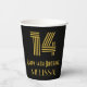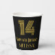 El diseño de esta copa de papel inspirado en el estilo de los años 20-1930 y de estilo vintage presenta un gran estilo inspirado en el arte deco, el número "14", junto con el mensaje de bienvenida de cumpleaños "Feliz cumpleaños número 14" y un nombre de personalizable. También tiene un fondo de color negro. Las tazas de papel temáticas de cumpleaños como esta podrían ser una manera divertida de celebrar el 14 cumpleaños de alguien. [~Z0000546]