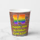 Este vibrante y divertido arte urbano callejero y el diseño de la taza de papel de cumpleaños con tema de graffiti presenta un gran número "14" con un colorido patrón inspirado en el gradiente del espectro arcoiris. También incluye el mensaje "Feliz cumpleaños número 14", y un nombre personalizado. El fondo está decorado con un patrón de pared de ladrillo. Vibrantes y coloridas tazas de papel como esta pueden ser divertidas de tener en una celebración de cumpleaños que se lleva a cabo para honrar el 14 cumpleaños de alguien. [~Z0000543]