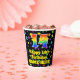 Este emocionante y alegre diseño de taza de papel con temática de cumpleaños presenta un gran número "14" con un patrón inspirado en el gradiente del espectro arcoiris, junto con el mensaje "Feliz cumpleaños 14", y un nombre de personalizable. El fondo presenta un patrón colorido con muchas estrellas de diferentes colores y tamaños. Vibrantes y coloridas tazas de papel como esta pueden ser divertidas de usar en una fiesta de cumpleaños/celebración que se lleva a cabo en celebración del 14 cumpleaños de alguien. [~Z0000540]