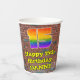 Este divertido y emocionante diseño de tazas de papel con tema de graffiti de cumpleaños tiene un gran número "15" con un colorido patrón inspirado en el gradiente del espectro del arcoiris, junto con el mensaje "Feliz 15 cumpleaños", y un nombre de personalizable. El fondo tiene un patrón de pared de ladrillo. Vibrantes y coloridas tazas de papel como esta pueden ser divertidas de usar en una fiesta de cumpleaños que se lleva a cabo en celebración del 15 cumpleaños de alguien. [~Z0000543]