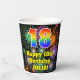 Este divertido y colorido diseño de taza de papel de cumpleaños presenta un gran número "18" con un patrón inspirado en el gradiente del espectro del arcoiris. También incluye el mensaje "Feliz cumpleaños número 18", y un nombre editable. El fondo presenta un patrón colorido inspirado en fuegos artificiales de celebración. Coloridas y vibrantes tazas de papel como esta pueden ser divertidas de usar en una fiesta de cumpleaños/celebración que se lleva a cabo en celebración del décimo octavo cumpleaños de alguien. [~Z0000539]