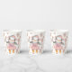 Una bonito adorable bailarina de festividad de cumpleaños pingüino Cups de papel para una pequeña fiesta de cumpleaños de chica con un bebé personalizado pingüino vestido como bailarina en un tutu rosa pálido girando una cinta rosa y un patrón de fondo de bailarinas de pingüino y globos de forma de corazón rosa. Personalice con el nombre y cumpleaños de su hijo en color morado. Artículos de fiesta coincidentes disponibles en suzigifts.