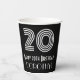 El diseño de esta copa de papel inspirado en el estilo de los años 20-30 presenta un gran estilo Art Déco inspirado en el número "20", junto con el mensaje de bienvenida de cumpleaños "Feliz cumpleaños número 20" y un nombre editable. El fondo es negro de color. Las tazas de papel temáticas de cumpleaños como esta podrían ser una manera divertida de celebrar el 20 cumpleaños de alguien. [~Z0000542]