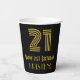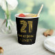 Este inspirado y vintage diseño de tazas de papel con temática de cumpleaños inspirado en el Roaring Twenties presenta un gran estilo inspirado en el Art Deco número "21", además del mensaje de bienvenida de cumpleaños "Feliz cumpleaños 21", y un nombre personalizado. El fondo es negro de color. Las tazas de papel temáticas de cumpleaños como esta pueden ser usadas en una fiesta de cumpleaños que celebra el 21 cumpleaños de alguien. [~Z0000546]