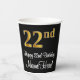 Este elegante, elegante y sofisticado diseño de tazas de papel con temática de cumpleaños presenta un gran número ordinal "22nd" con un aspecto imitación/falso inspirado en el oro, junto con el mensaje de bienvenida de cumpleaños "Feliz cumpleaños número 22" y un nombre de personalizable con un tipo de letra estilo script. El fondo es negro de color. Se pueden usar lujosos vasos de papel como este cuando se aloja a un fiesta para alguien en celebración de su 22 cumpleaños. [~Z0000538]