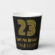 Este estilo vintage, inspirado en el estilo de los años 20-30, presenta un gran estilo Art Déco inspirado en el número "23", además del mensaje de bienvenida de cumpleaños "Happy 23rd Birthday" y un nombre personalizado. El fondo es negro de color. El estilo de las décadas de 1920-1930 inspiró tazas de papel temáticas de cumpleaños como esta que podrían ser usadas en una fiesta de cumpleaños para celebrar el 23 cumpleaños de alguien. [~Z0000546]