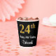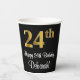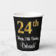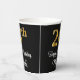 Este elegante, elegante y lujoso diseño de taza de papel con temática de cumpleaños presenta un gran número ordinal "24th" con un patrón de gradiente inspirado en el oro imitación/faux, junto con el mensaje de bienvenida de cumpleaños "Feliz cumpleaños 24", y un nombre personalizado con un tipo de letra estilo script. También tiene un fondo de color negro. Sofisticadas tazas de papel con temas de cumpleaños como esta podrían ser usadas en una fiesta de cumpleaños para celebrar el cumpleaños 24 de alguien. [~Z0000538]