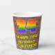 Este divertido y vibrante arte urbano callejero y el diseño de la taza de papel de cumpleaños con tema de graffiti presenta un gran número "24" con un colorido patrón inspirado en el gradiente del espectro arcoiris. También incluye el mensaje "Feliz cumpleaños número 24", y un nombre editable. El fondo está decorado con un patrón de pared de ladrillo. Coloridas y vibrantes tazas de papel como esta pueden ser divertidas de usar en una celebración de cumpleaños que se lleva a cabo en celebración del 24 cumpleaños de alguien. [~Z0000543]