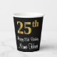 Este lujoso, sofisticado y elegante diseño de tazas de papel con temática de cumpleaños presenta un gran número ordinal "25th" que tiene un patrón de gradiente inspirado en el oro falso/imitación, junto con el mensaje de bienvenida de cumpleaños "Happy 25th Birthday," y un nombre personalizado con un tipo de letra estilo script. También tiene un fondo de color negro. Las tazas de papel temáticas de cumpleaños como esta pueden ser divertidas de usar en un fiesta que está siendo retenido por alguien que está celebrando su cumpleaños 25. [~Z0000538]