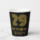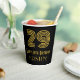 Este estilo vintage, inspirado en el estilo de los años 20-30, presenta un diseño inspirado en el estilo de la copa de papel con temática de cumpleaños con un gran toque de Art Déco, el número "29", además del mensaje de bienvenida de cumpleaños "Happy 29th Birthday" y un nombre personalizado. El fondo es negro de color. Se pueden usar vasos de papel como este para celebrar el 29º cumpleaños de alguien. [~Z0000546]