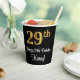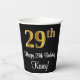 Este elegante, lujoso y sofisticado diseño de tazas de papel con temática de cumpleaños presenta un gran número ordinal "29th" con un aspecto de imitación de oro falso, además del mensaje de bienvenida de cumpleaños "Feliz cumpleaños 29th", y un nombre personalizado con un tipo de letra estilo script. También tiene un fondo de color negro. Se pueden usar vasos de papel como este en un fiesta que se celebra el 29º cumpleaños de alguien. [~Z0000538]
