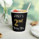 Este diseño ornamental y opulento de taza de papel de cumpleaños presenta un nombre editable y el mensaje "Fiesta de cumpleaños segundo". El gran número "2nd" tiene un patrón de color inspirado en el oro de imitación/imitación, y las palabras "Birthday Party" están en un texto elegante de estilo de escritura. El fondo es negro de color de forma predeterminada (aunque se puede personalizar). Unas lujosas tazas de papel como esta podrían ser útiles para tener en una fiesta de cumpleaños que se celebra en celebración del segundo cumpleaños de alguien. [~Z0000567]