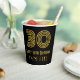 El diseño de esta copa de papel inspirado en el estilo de los años 20-30 presenta un gran estilo inspirado en el arte deco, el número 30, además del mensaje de bienvenida de cumpleaños "Feliz cumpleaños número 30" y un nombre personalizado. El fondo es negro de color. El estilo de los años 1920-1930 inspiró tazas de papel temáticas de cumpleaños como esta que podrían ser usadas en un fiesta que celebrara el trigésimo cumpleaños de alguien. [~Z0000546]