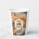 Celebra cualquier edad con una preciosa taza de papel de personalizable. Magníficos crisantemos rosas y naranjas con mariposas azules y suntuosas zonas verdes. Un diseño femenino elegante pero bonito.