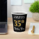 Este elegante y ornamentado diseño de taza de papel de cumpleaños presenta un nombre editable y el mensaje "35th Birthday Party". El gran número "35th" tiene un patrón de color inspirado en el oro de imitación/imitación, y las palabras "Birthday Party" están en un elegante texto estilo guión. El fondo es negro de color de forma predeterminada (aunque se puede personalizar). Lujosos y lujosos vasos de papel como este pueden ser útiles para tener en una fiesta de cumpleaños que se lleva a cabo en celebración de los 35 años de alguien. [~Z0000567]