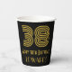 Este inspirado y vintage diseño de tazas de papel con temática de cumpleaños inspirado en el Roaring Twenties presenta un gran estilo inspirado en el art deco número "38", además del mensaje de bienvenida de cumpleaños "Happy 38th Birthday" y un nombre personalizado. También tiene un fondo de color negro. Vintage look papel tazas como esta puede ser divertido usarlas en una fiesta de cumpleaños en honor a los 38 años de alguien. [~Z0000546]