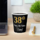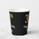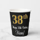 Este elegante, sofisticado y elegante diseño de tazas de papel con temática de cumpleaños presenta un gran número ordinal "38th" con un aspecto imitación/faux de inspiración dorada, además del mensaje de bienvenida de cumpleaños "Feliz cumpleaños número 38", y un nombre personalizado con un tipo de letra estilo script. El fondo es negro de color. Copas de papel temáticas de cumpleaños como esta pueden ser divertidas de usar en una fiesta de cumpleaños que se celebra para alguien que está celebrando su 38 cumpleaños. [~Z0000538]