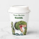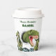 A playful 3D-style dinosaur bursts through a torn paper effect, creating the illusion of jumping right out of the design. With its wide-open jaws and a fun, dynamic expression, the dinosaur brings energy and excitement. Surrounded by bright green leaves, the scene feels lively and adventurous—perfect for kids’ decorations, party themes, and playful prints.